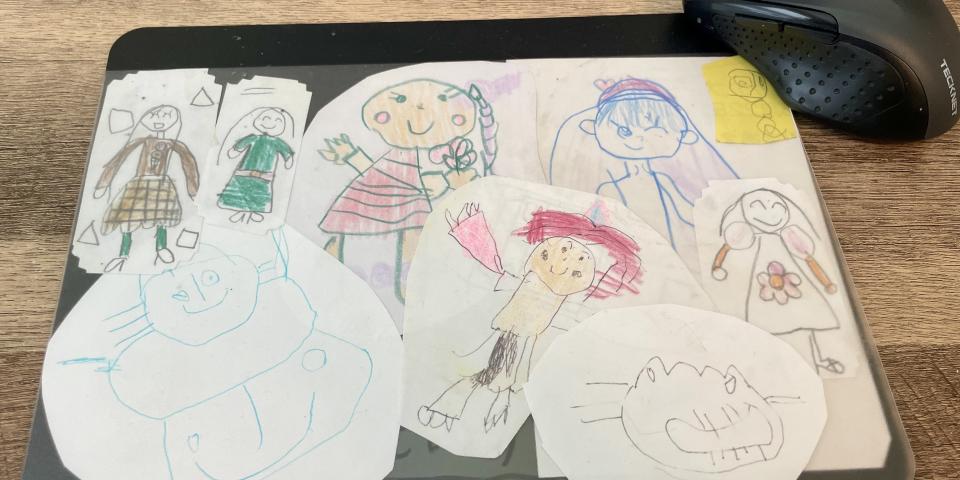 子どもたちが小さい頃に描いた絵を、マウスパッドの中に入れています。仕事中に目に入るたび、良い思い出がよみがえります。