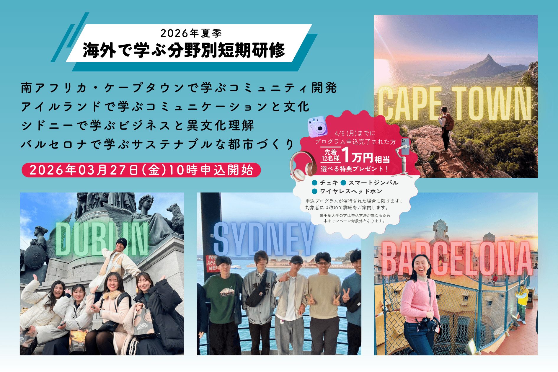 海外で学ぶ分野別短期研修(2026年夏季)※3/27(金)募集開始!